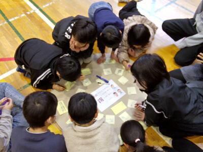 それぞれのグループで、福島小のよいところや、もっとよくするための話し合いをしました。