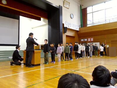 その後は、賞状伝達が行われました。2学期の間、ポスターや詩などに自主的に応募した子供たちが、輝かしい結果を残しました。子供たちは、頑張りが形となり、誇らしげでした。