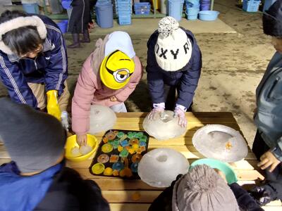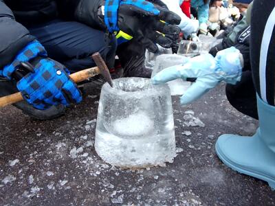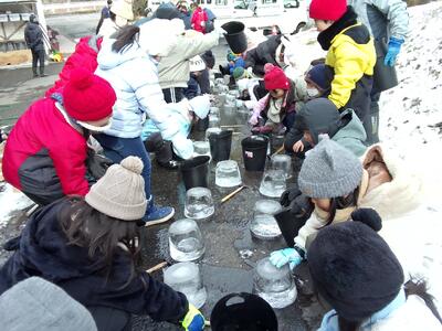 福島小の子供たちも、毎年氷のキャンドル作りに参加しています。