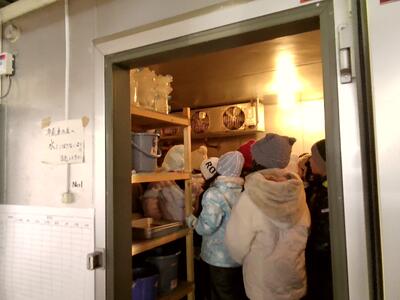 初めて見る大きな冷凍庫に子供たちは興味津々でした。中には、町内の小学生や、看護学校、高校の生徒たちが作ったキャンドルが冷やされていました。町民全員で作る行事に、子供たちは静かにやる気を燃やし始めます。