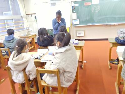 授業の合間に話してくれる母国の風習や文化に、子供たちは興味津々です。