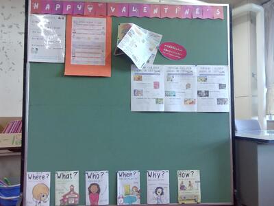 日常会話でよく使う英語も、児童の目にとまるところに貼られています。
