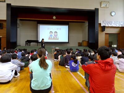 「いただきます!」の合図で、一斉に食べ始めました。 大きな口でご飯を頬張る子、サラダを一口食べて「おいしい!」と目を輝かせる子。友達と一緒に食べる給食は、いつもの食事よりもさらに特別に感じられたようです。
