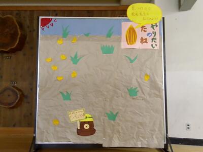 子供たちの「〇〇になりたい!」「〇〇したい!」という思いが、種の形の紙に書かれて貼られていきます。休み時間には、何人かの子供たちがこれを見ながら、やりたいことについて話し合っていました。