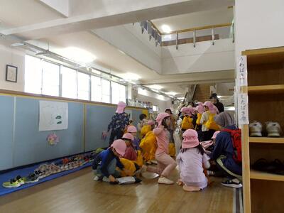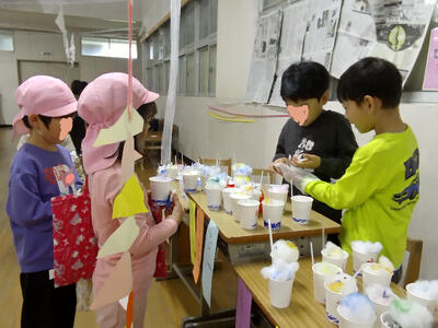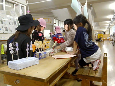 「あ…」と、誰かの驚きの声がもれ、歌いながら、隣の子と顔を見合わせてにっこりと笑いました。その表情は、「できた!」「きれいだね!」と、声なき声で語り合っているようでした。