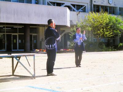 福島小では、朝の時間に体育的活動を行っています。その中で、相撲についての指導も行っています。今回は、四股や組み合い方などの基本的な動きをおさらいしました。木の香る体育館に全員の力強い四股が響くのは圧巻でした。1年生の子も慣れたもので、脚をとても高く上げて四股を踏んでいました。木曽の伝統が息づいています。
