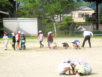 4年生は田植えです。JA職員の方のご厚意で、水田をお借りして田植えをしました。子供たちは最初、どろどろの田んぼに脚を踏み入れるのは戸惑っていました。次第に一人、二人と入っていき、苗を植えていきました。