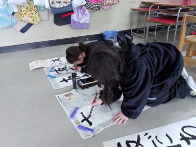 お正月気分が徐々に抜けて、気持ちが学習に向きつつあります。書写では、書き初めを行いました。子供たちは、お手本を見て、ゆっくり確実に筆を走らせます。