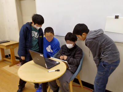 5年生では、社会科の授業でニュース作りをしていました。タブレットのカメラでニュース原稿を読み上げるところを撮影しています。タブレットのアプリで動画を編集して、オリジナルのニュースを作ります。インタビューをしたり、テロップを入れたり、撮影アングルにこだわったり、AI音声に原稿を読ませたり、記事をニュースにしていく姿は、本物の報道記者のようでした。